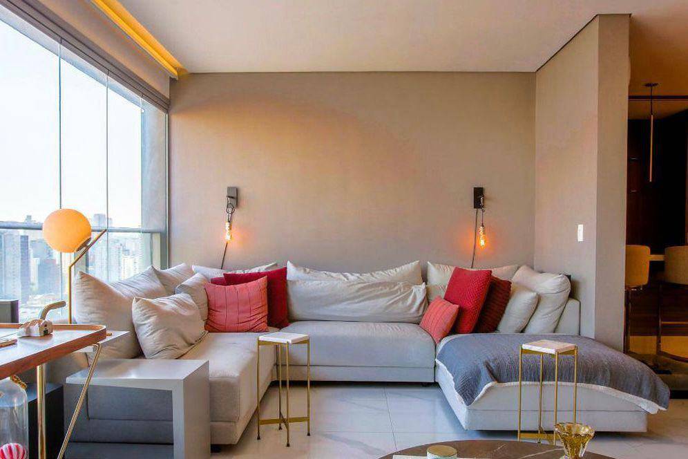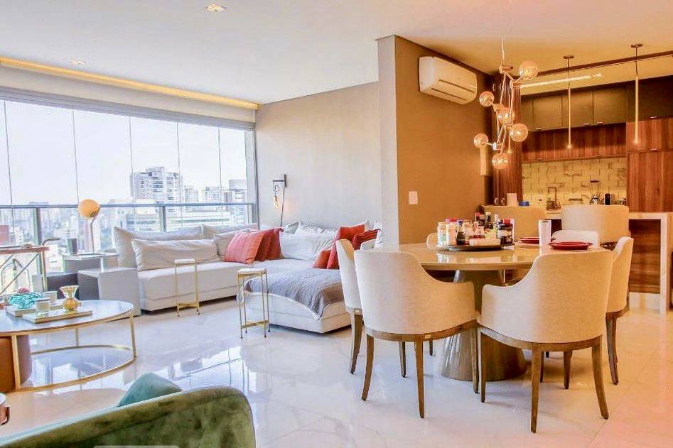 Apartamento com 103m², 2 suítes e 3 vagas de garagem. O imóvel possui amplo living para 2 ambientes, varanda, ótimo acabamento interno, totalmente mobiliado, bem iluminado e arejado, com lavabo, cozinha planejada, armários embutidos, ar condicionado e área de serviço. Área de lazer com churrasqueira, pista cooper, salão de festa, jardim, playground, piscina e academia. Além de ser um bairro familiar e arborizado, possui ótima localização, próximo à Avenida Santo Amaro. A estação Vila Olímpia da CPTM está aproximadamente a 1,9 KM de distância do imóvel. A região ainda conta com grande oferta de restaurantes, supermercados, farmácias e escolas.