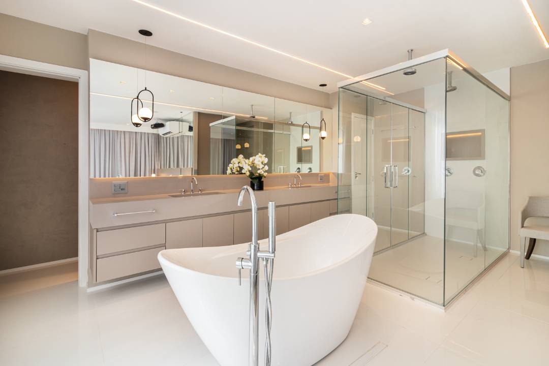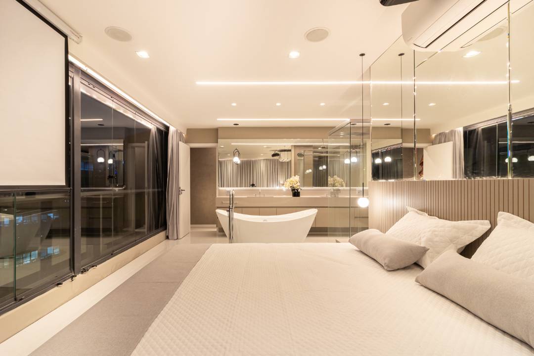 cozinha, 3 suítes sendo uma suíte master no piso superior com banheira Free Standing que contempla a vista do bairro nobre de São Paulo. Desfrute das comodidades do condomínio com espaço