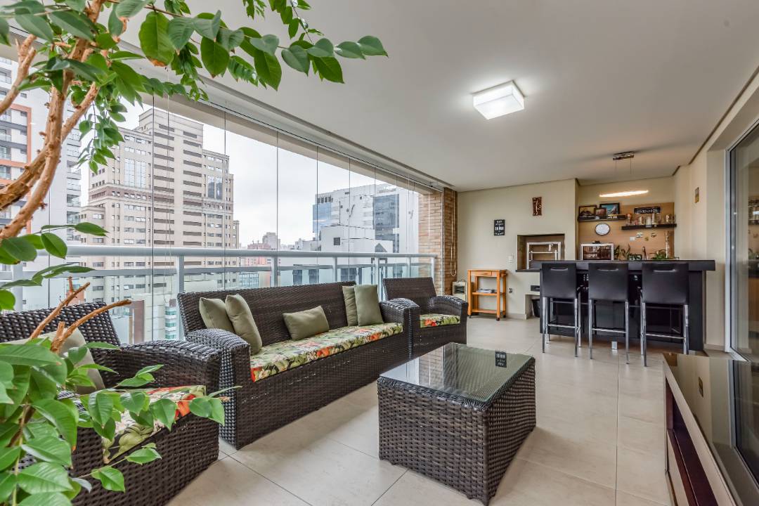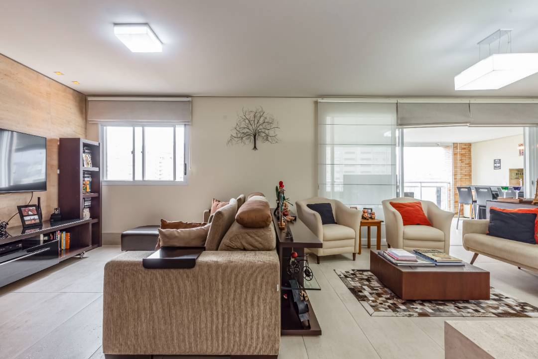 São 162m², conta com 3 suítes, terraço gourmet com churrasqueira a carvão, dependência completa de funcionária e 3 vagas.