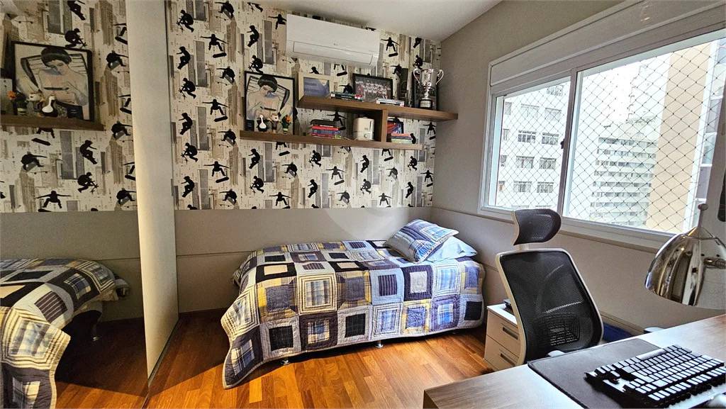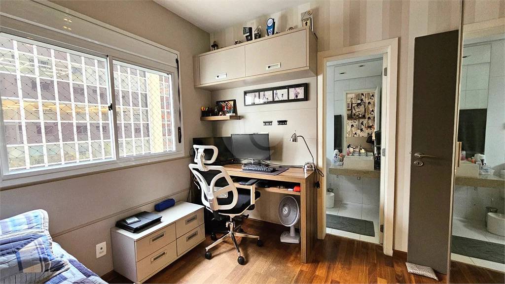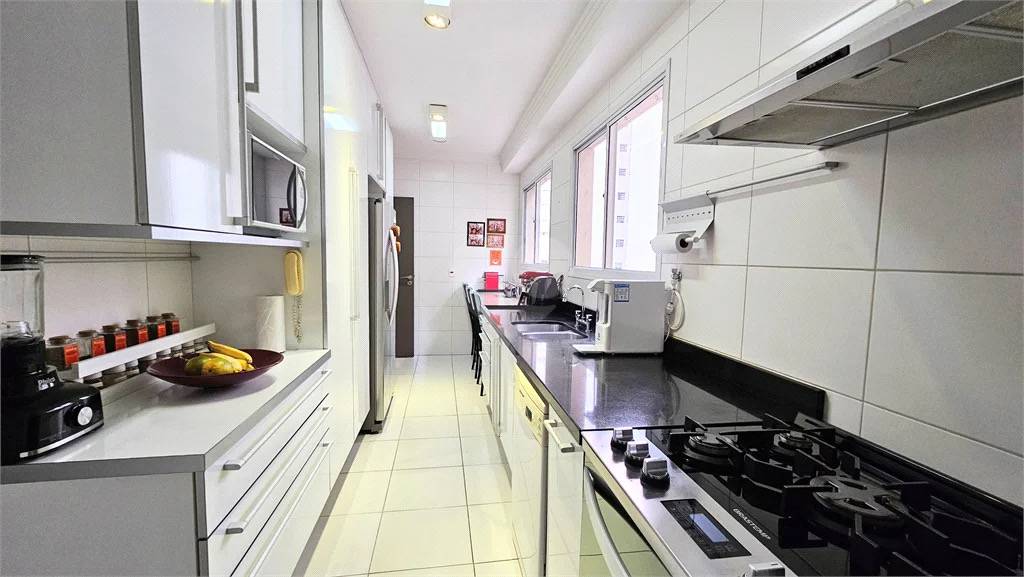 Conta com 3 suítes espaçosas e repletas de armários planejados, além de uma cozinha moderna, área de serviço com dependência completa, ar-condicionado e aquecimento a gás.