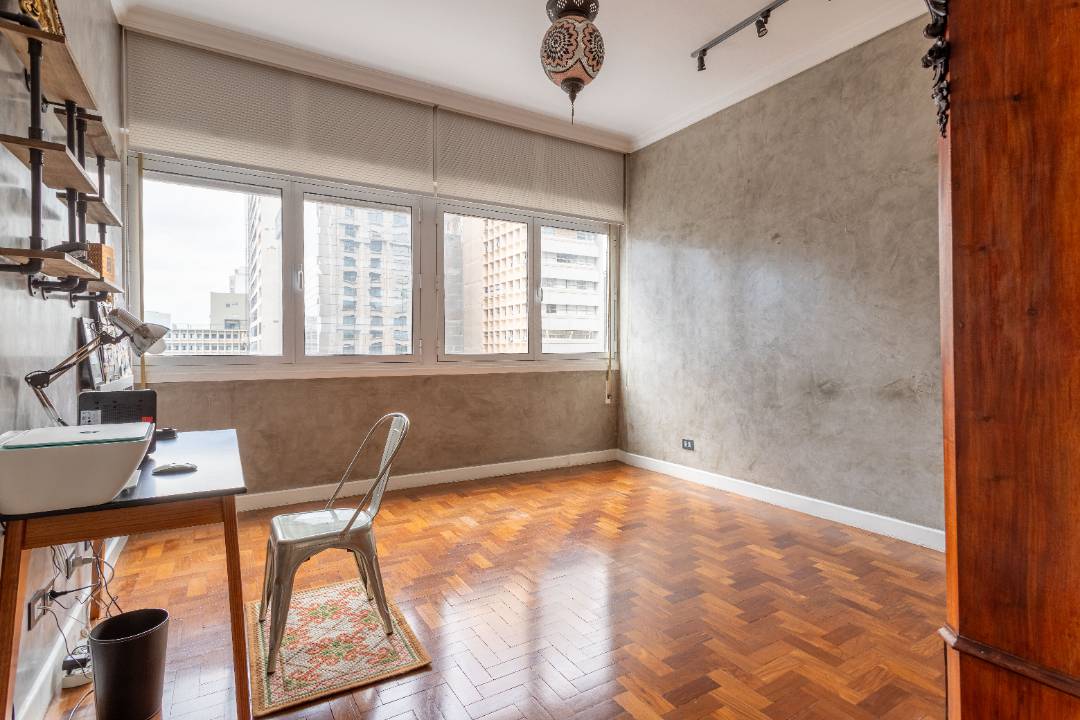 Apartamento em prédio ícone, totalmente reformado com projeto super moderno e muito bem localizado na região da paulista. O living tem 3 ambientes com uma iluminação que valoriza cada cantinho e o teto de cimento queimado. A cozinha é super funcional mesclando tons escuros e claros. As lajes são nervuradas. A área de serviço é bem grande com quarto e banheiro para funcionário. e um quarto com aparelhos de academia. As janelas dos quartos são anti ruído e os banheiros são com vidrotil. O apartamento não tem garagem, mas existe a possibilidade de alugar no prédio.